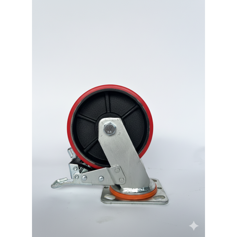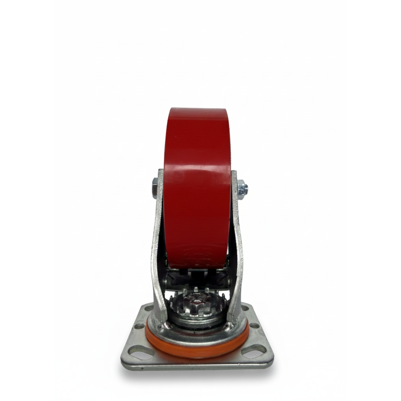 Rueda de alto desempeño fabricada en silicona industrial, diseñada para equipos y maquinaria de alto tonelaje. Su construcción robusta y su terminación en acero garantizan un desplazamiento suave, silencioso y resistente, incluso bajo cargas extremas.
